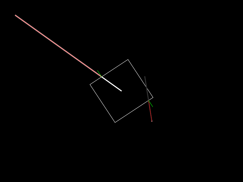 -- We also get the surface normal of the edge the ray hit. Here drawn in green